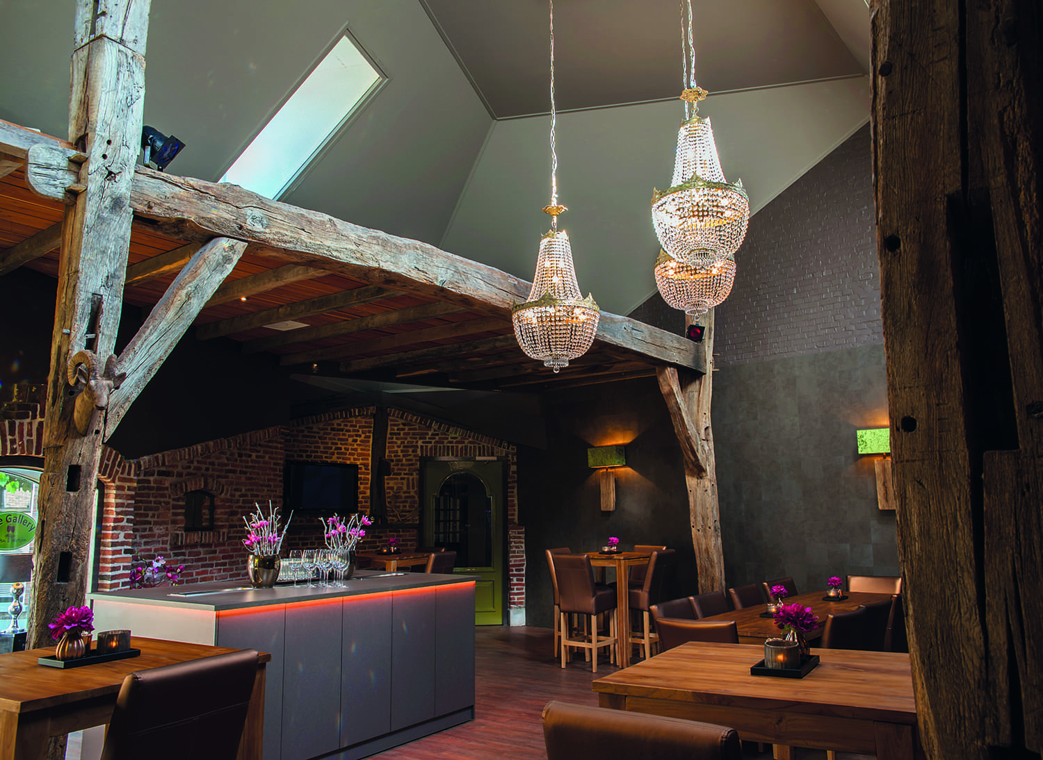 Bij de realisatie van deze ruimte is rekening gehouden met de oude elementen om er een sfeervol geheel van te maken.