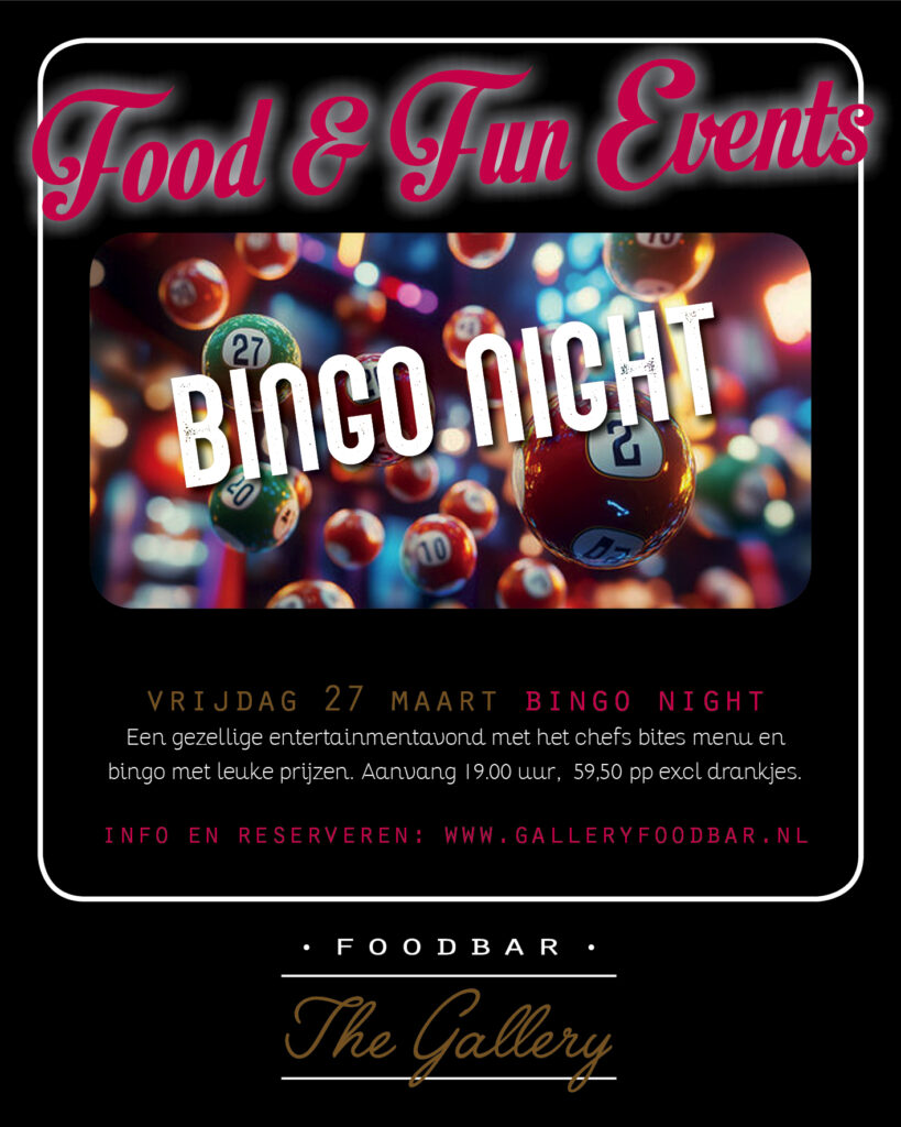 Foodbar the Gallery voor een naadloze overgang van diner naar entertainment en een levendige bar-modus, garant voor een top avond.